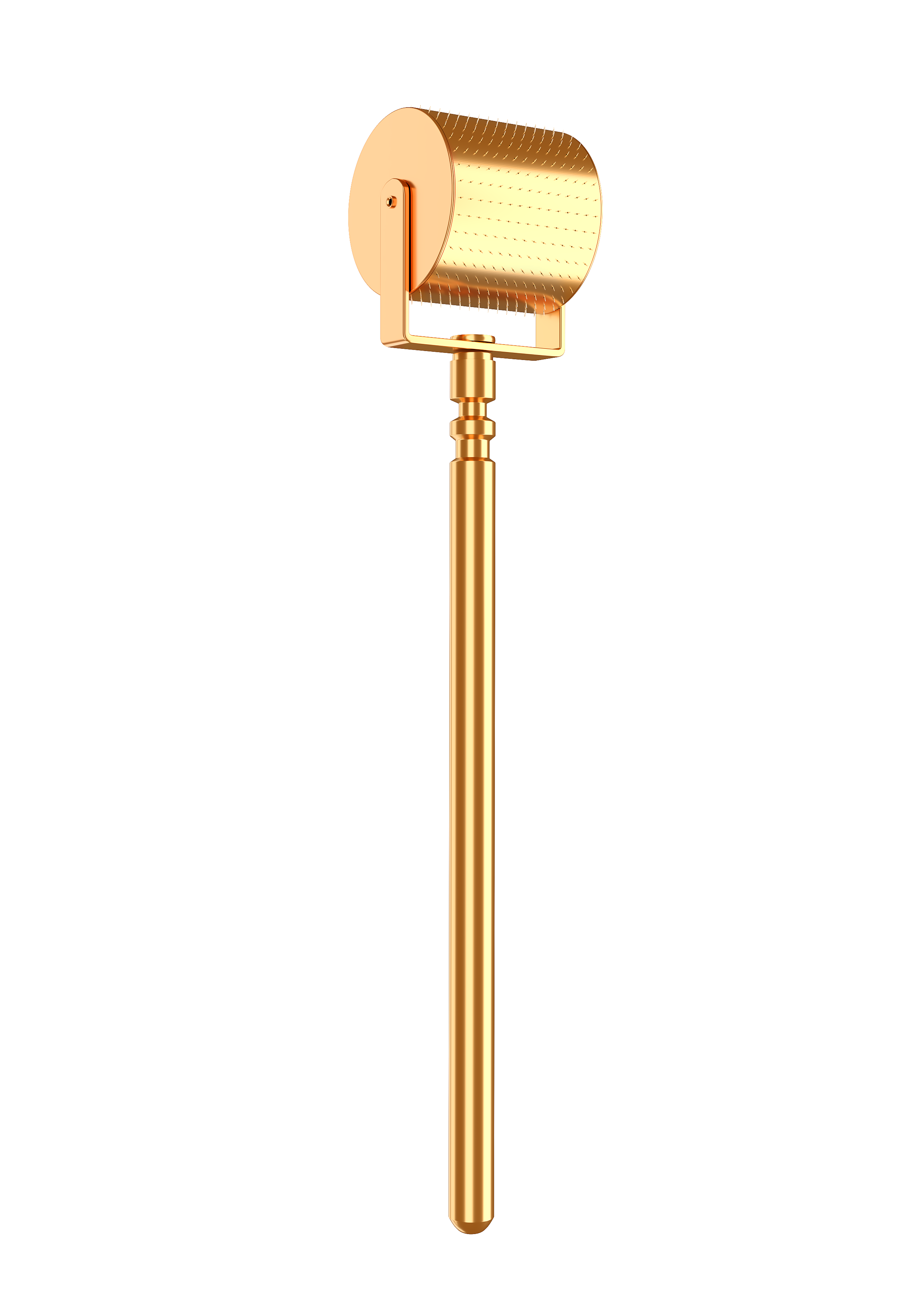 Handheld, 14-carat gold plated CIT roller. With 260 ultra-fine definition points of .2mm used to penetrate gently into areas of your skin that may need more attention; such as the areas around your nose, mouth and eyes.  The Gold roller is Finished in 14ct gold which naturally suppresses bacteria growth and is easy to clean.